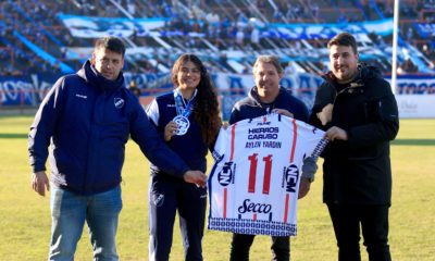 La karateca del club Alvarado, Aylén Yardín recibió un reconocimiento por parte del club en el entretiempo del partido de la Primera Nacional ante San Miguel...